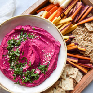 This quick hummus is a delicious and versatile. Use red beets if you want an earthy and mineral forward hummus. Use golden beets for a more mellow and sweet flavor.