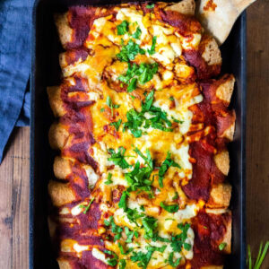 This recipe might be a bit extensive, but the effort is well worth it. Leeks?! Enchiladas!? Trust us, you will not be disappointed.